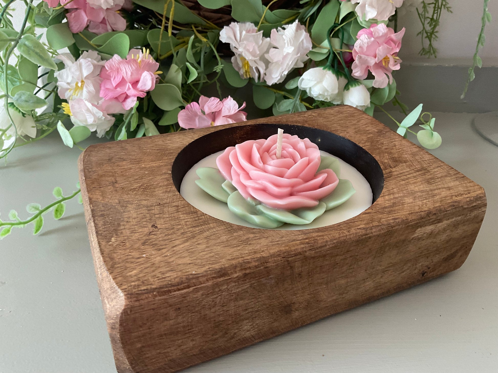 This handcrafted candle is more than just a centerpiece — it’s a sensory experience. Nestled in a rustic wooden bowl, a delicate flower-shaped wax design gently cradles the wick, ready to fill your space with the comforting scent of Northern Warmth — a luxurious blend of soft cashmere, bright lemon, and a whisper of spices.